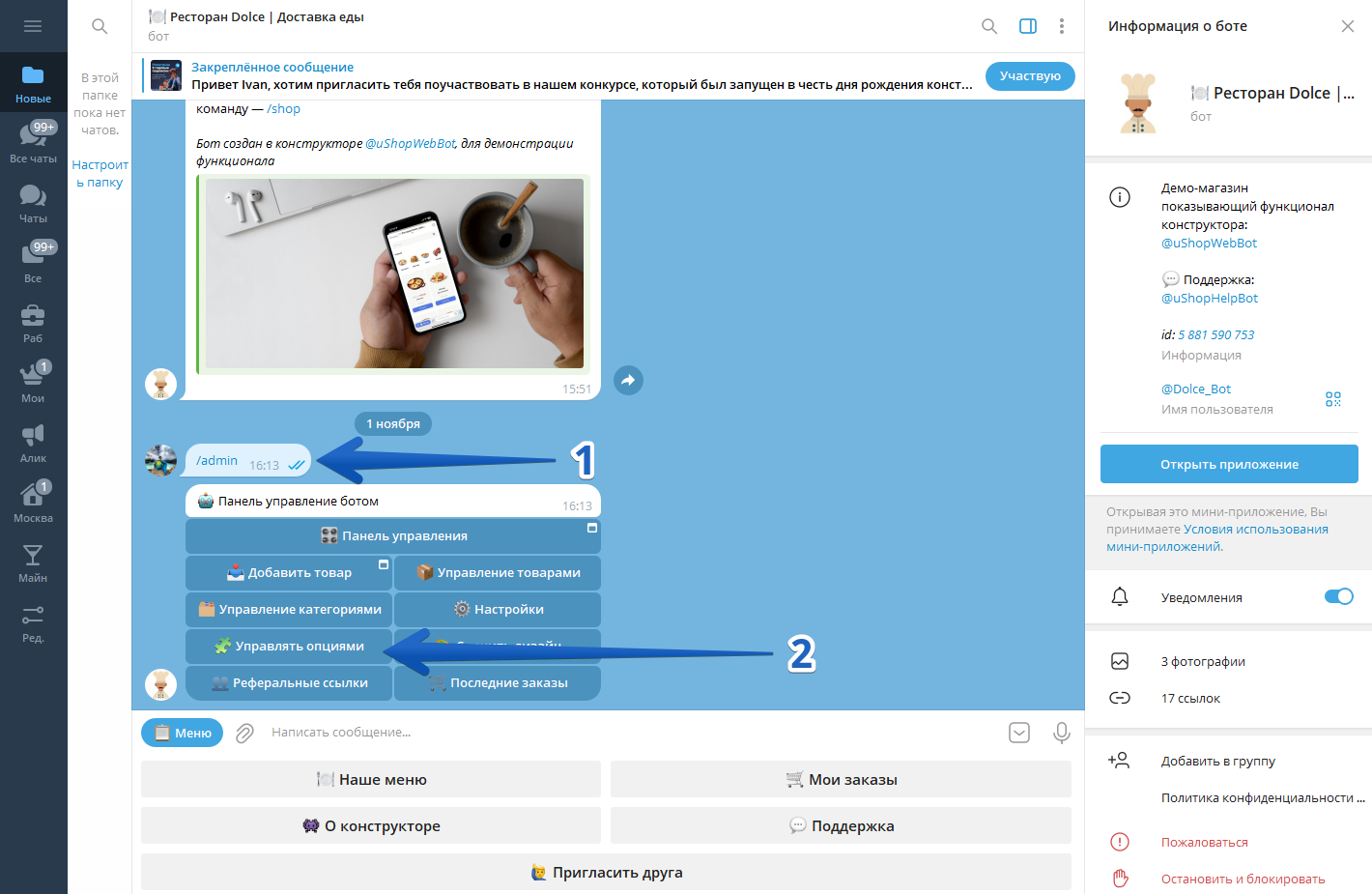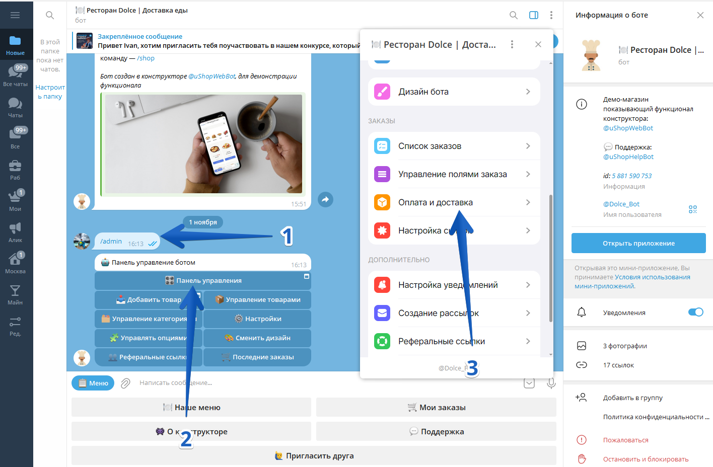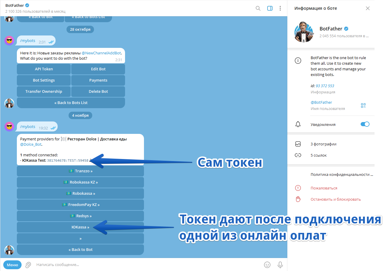 Чтобы подключить эти оплаты от Telegram, вам нужно зайти в раздел "🛠