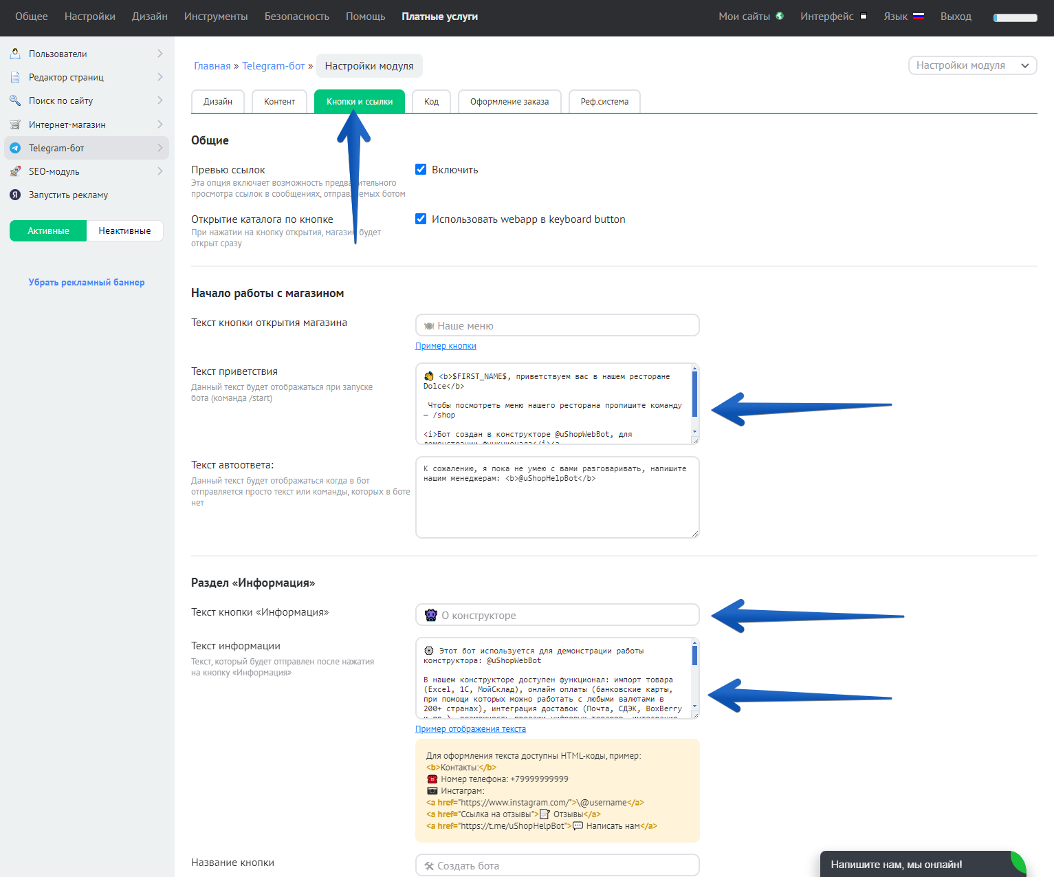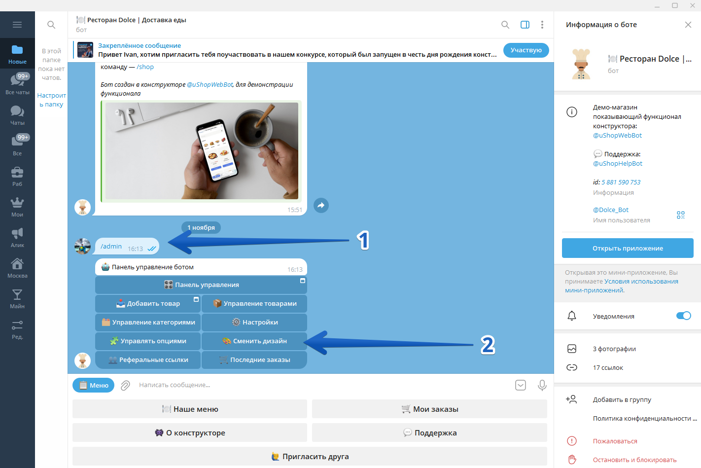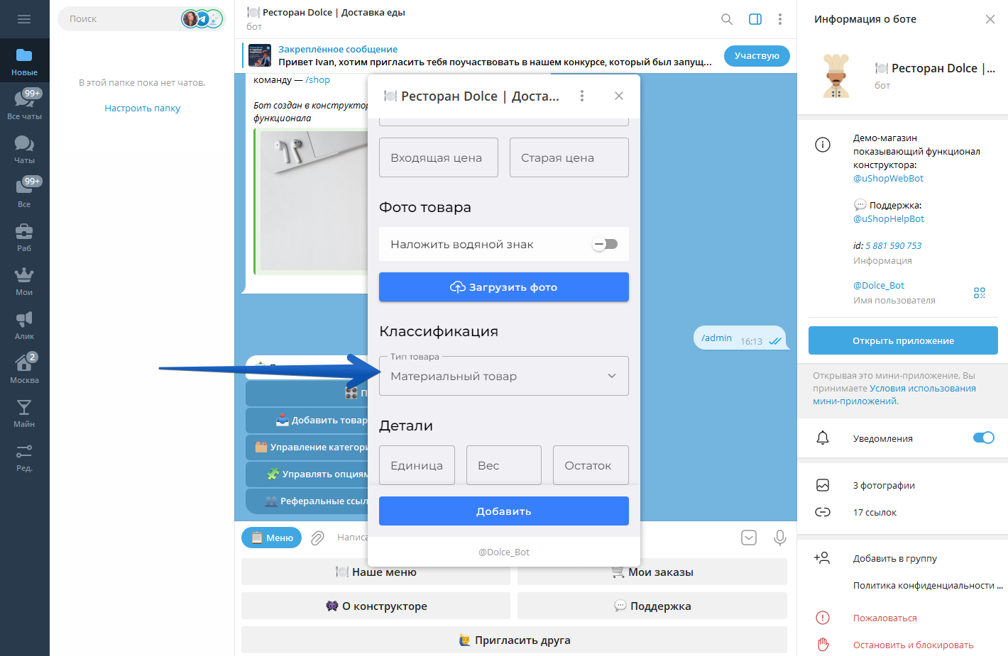 Чтобы подключить эти оплаты от Telegram, вам нужно зайти в раздел "🛠